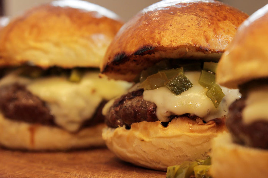 Tend the barbie while the buns are getting crisp and turn the patties. When the patties are looking close to being ready turn for the last time before adding the cheese on top, closing the barbie lid, and turning the grill to low heat